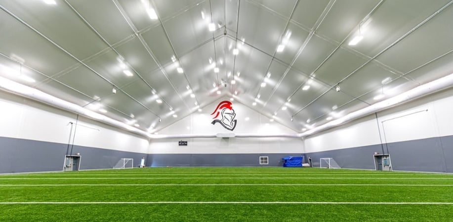 - Custom designed ExxoTec™ Elite PVC fabric cladding, white with gray mountain design that features custom vinyl decals of mascot and college logos on the interior and exterior of the facility